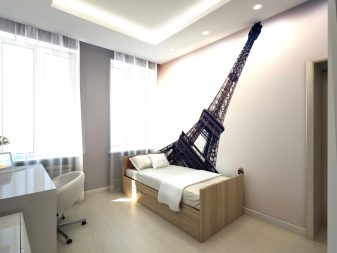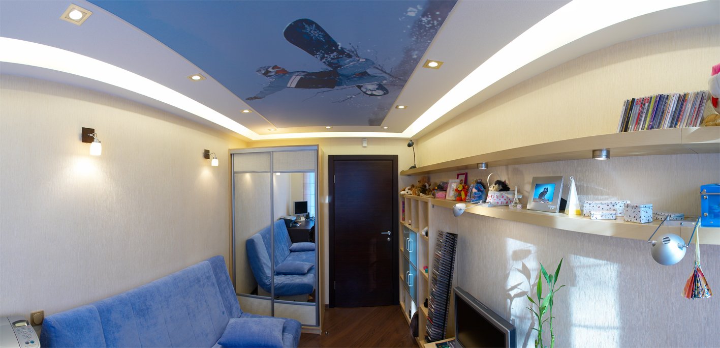 To make the design interesting for a teenager, use the custom-made ceiling service, taking into account the wishes and preferences of the child.