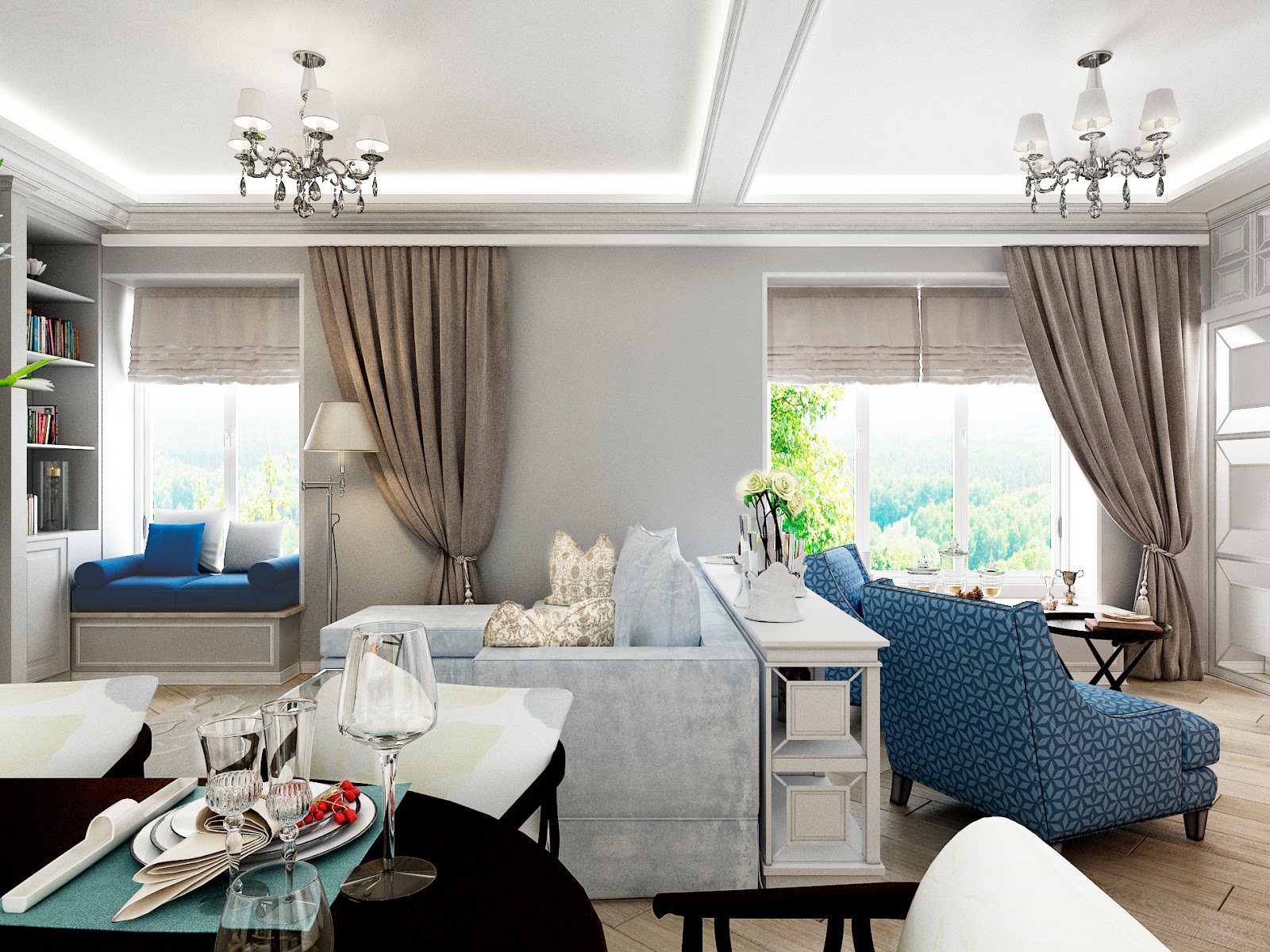 - Bright hues. Bright palette - the best solution for compact rooms. Such colors will not only visually increase its size, but also fill the room with light, making the decor easier and fresher. Such a palette would be quite appropriate in classical and modern directions.