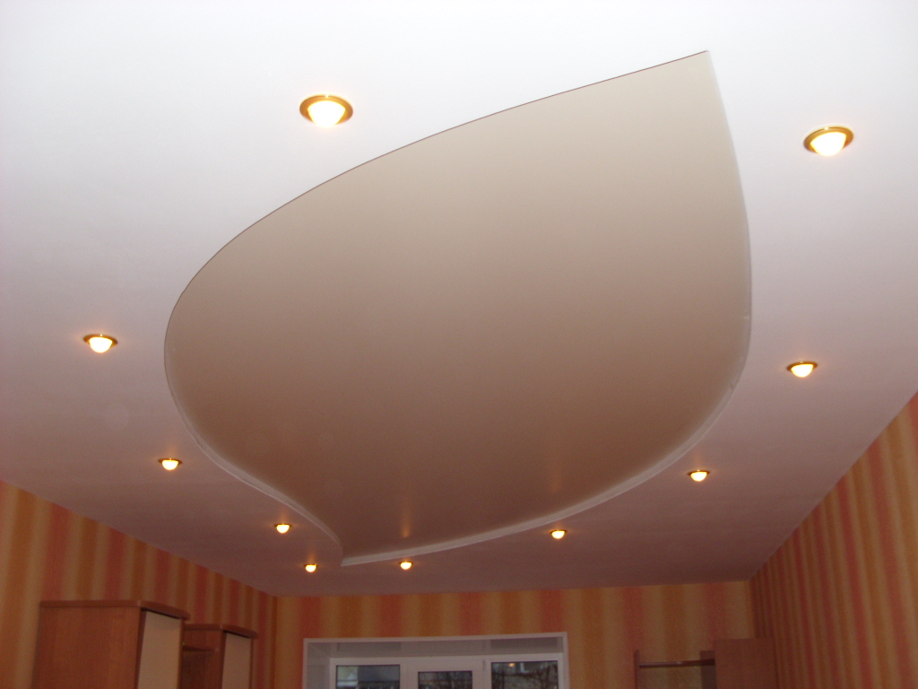 - Multilevel. Models of this type can strike with originality of forms. As a rule, these are the rarest and most expensive varieties. Separate compositions are entitled to be called modern works of art. With the help of such a composition it is possible to translate into reality the most daring and extraordinary design ideas.Multi-level ceilings are best to install in spacious rooms. This is the perfect solution for the design of spacious rooms, bedrooms and living rooms.