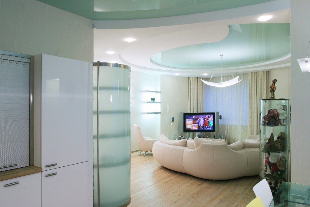 You can place a stretch ceiling in any part of the house, regardless of the size of the location, the height of the ceiling and other parameters. Designs from several tiers are ideal for placement in spacious rooms. Make a choice in favor of single-tier structures is desirable if you are looking for a model for a small house.