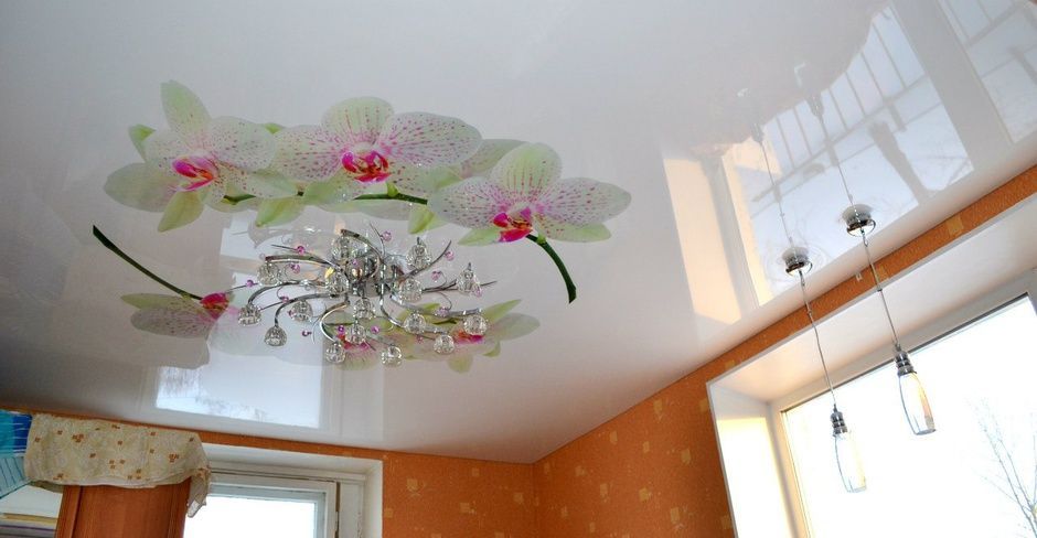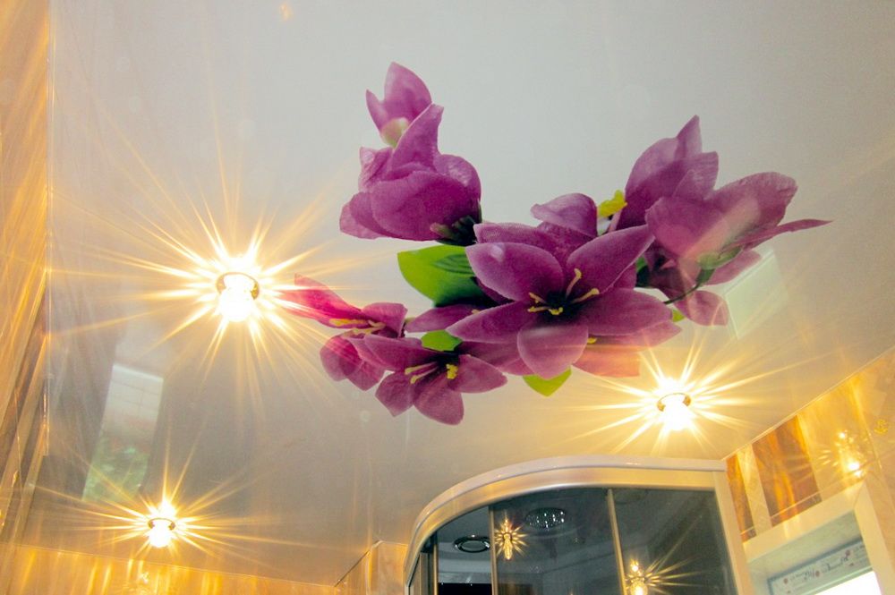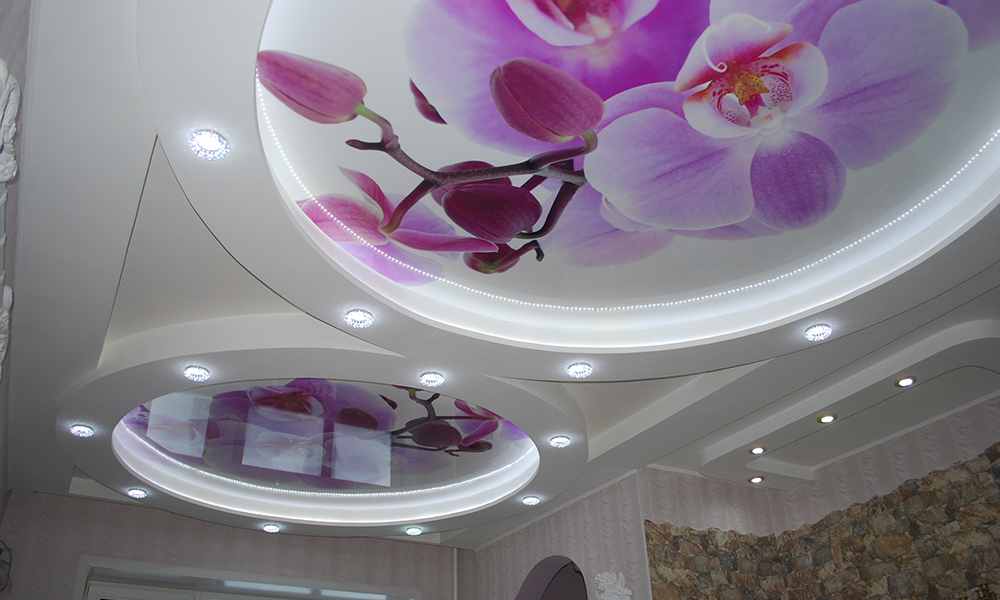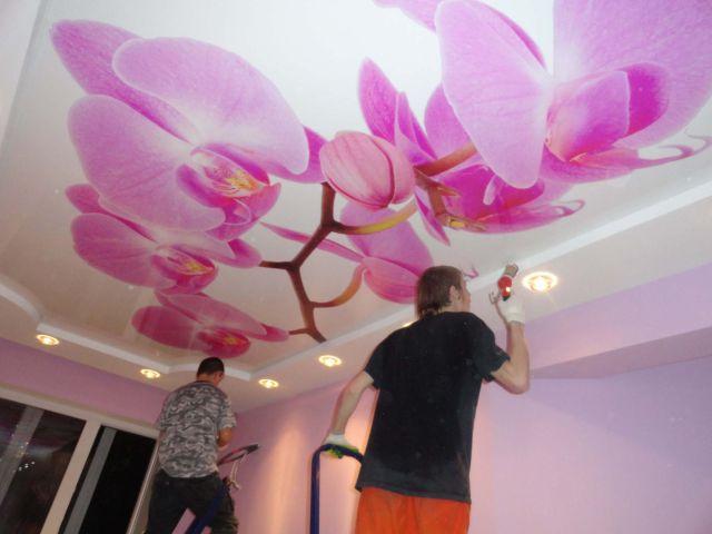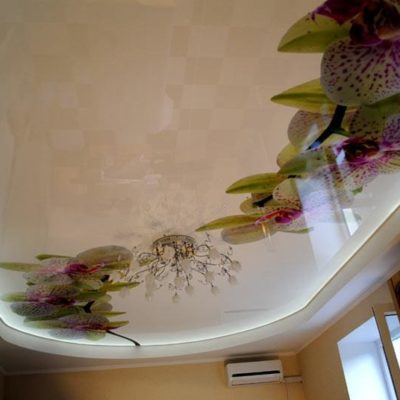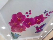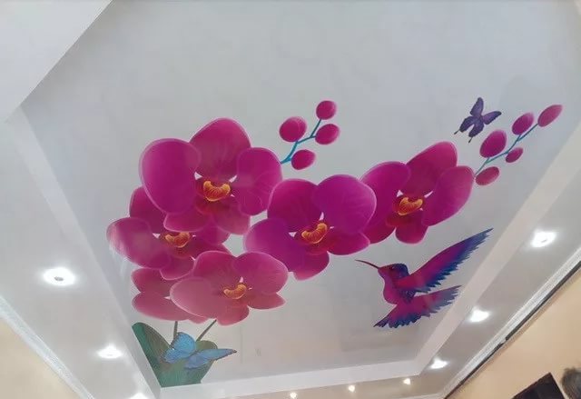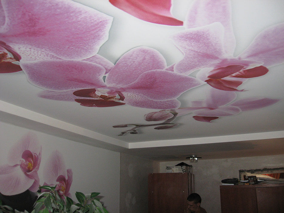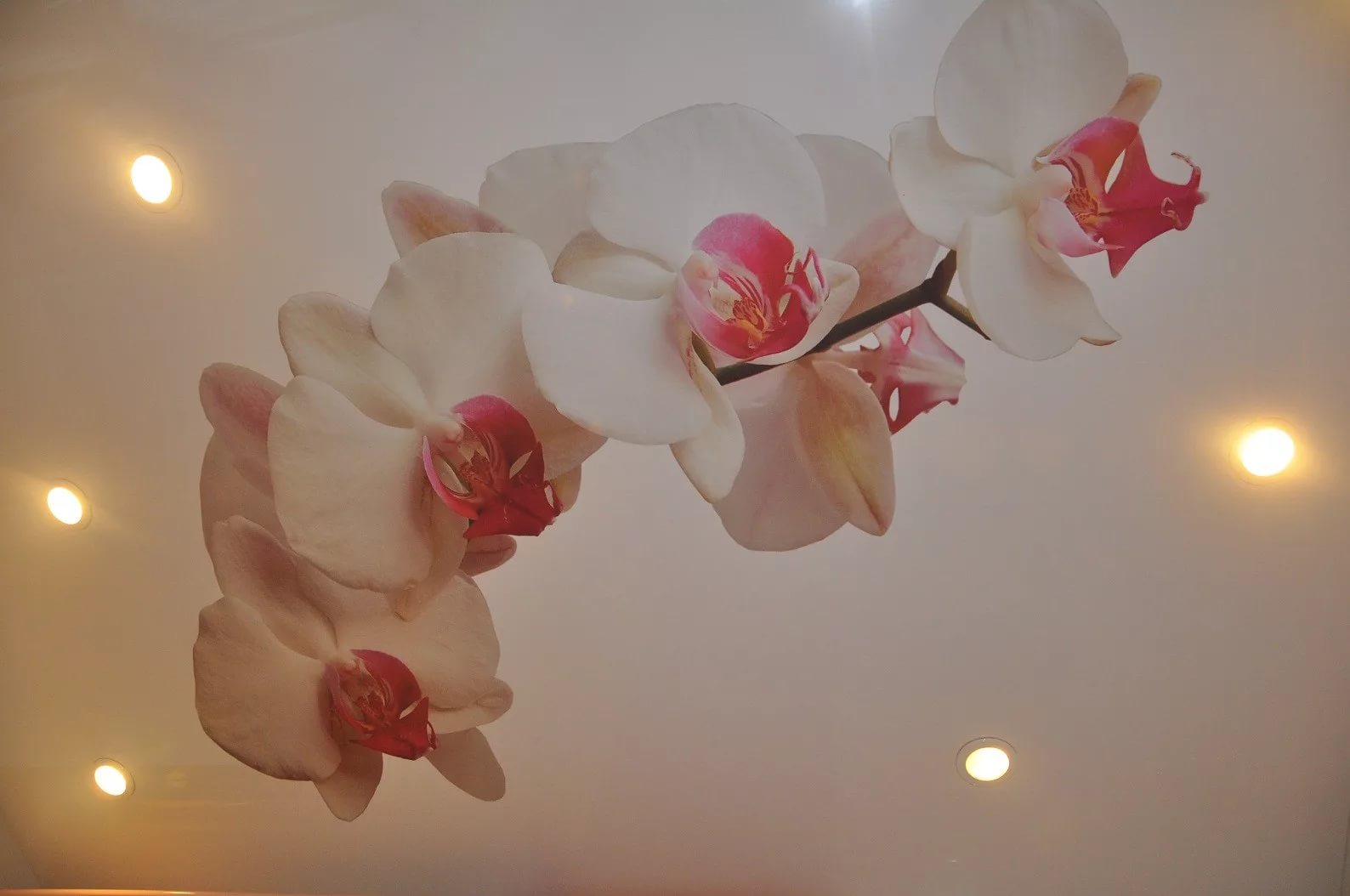 Stretch ceiling with orchids is in demand among customers due to its extraordinary beauty and originality.