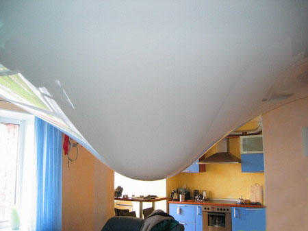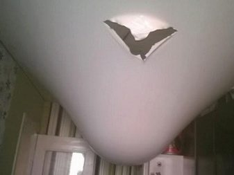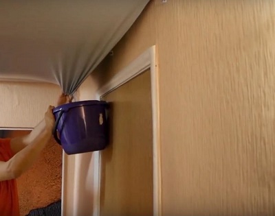Flooding of the ceiling can occur in a single-story room. For example, if the roof requires repair and there are gaps in it, through which water can seep into the cavity of the tension film.