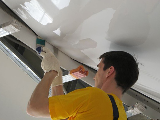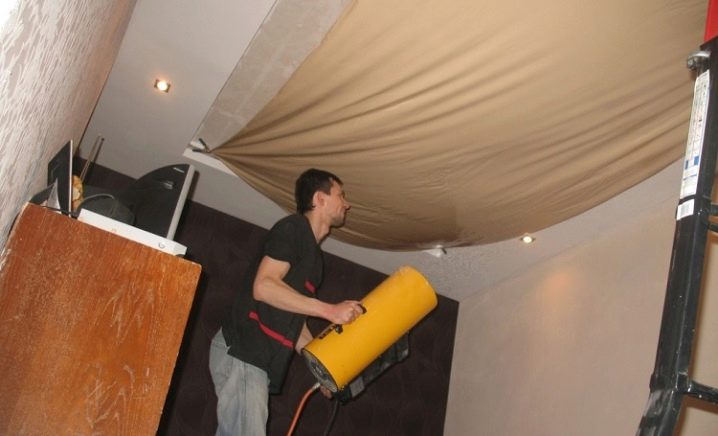The process of restoring the ceiling should be carried out using a heat gun or a building dryer. Depending on the type of ceiling, the installation of the dried film takes place. Final drying may take a week.