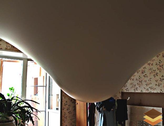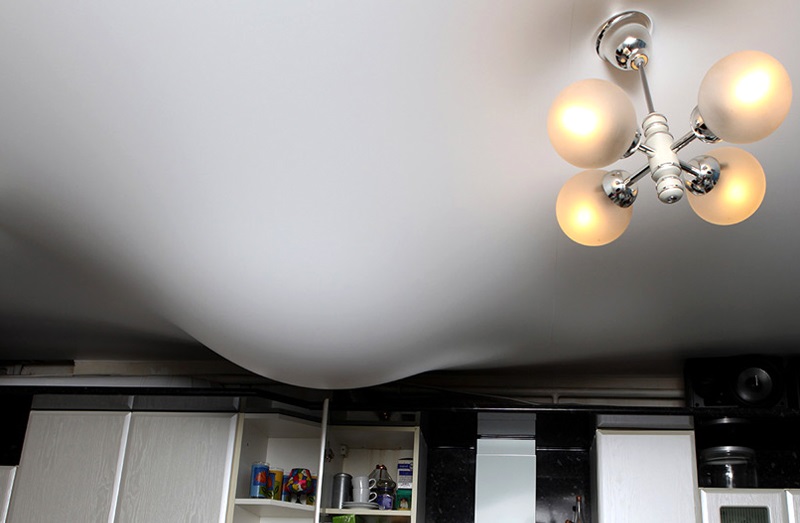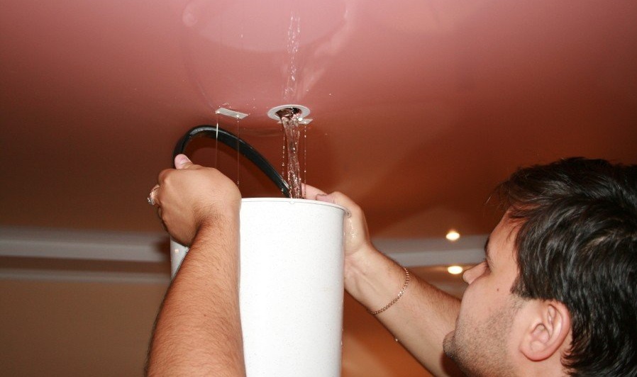 If your neighbors did not close the tap with water or it was blown off, or even a pipe burst, the ceiling will be flooded with clean water. But here its temperature is very important. Cold or barely warm water will not cause significant damage to the stretch ceiling, unlike hot water, which, once on the film, can deform and completely spoil it.
