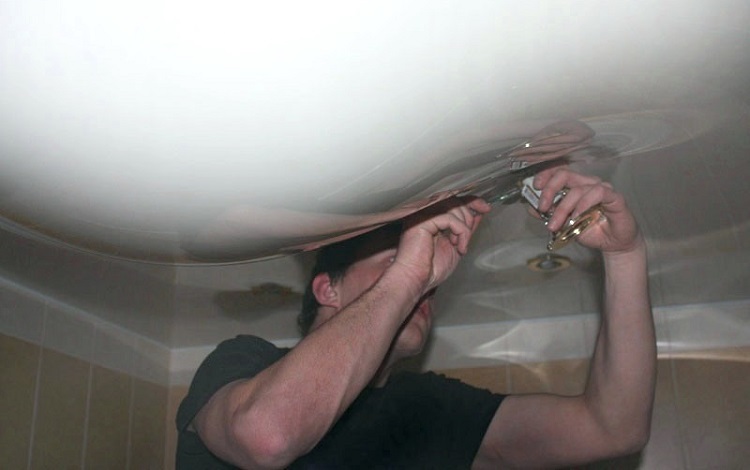 If the neighbors flooded you, then you need to know how to drain the water from the cloth that has accumulated there. Such a nuisance can happen around the clock, and it is necessary to pump out water quickly. Also, water in the stretch ceiling can accumulate for other reasons.
