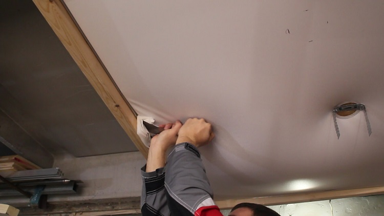 In the case when the film is snapped to the ceiling profile, it plays the role of a clothespin into which the canvas is inserted with the help of tools. To detach the edge of the film, you need to click on it at the very profile. Independently right edge of the canvas will not succeed. This question is solved by the master with professional equipment.