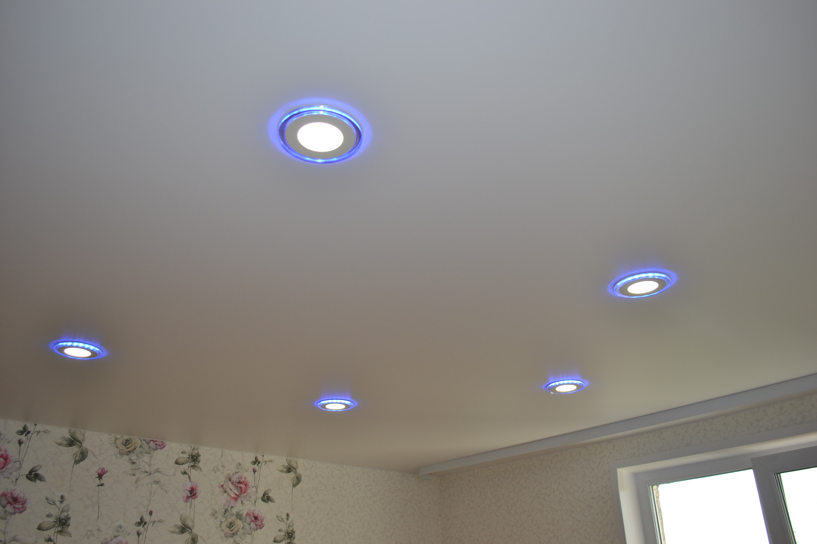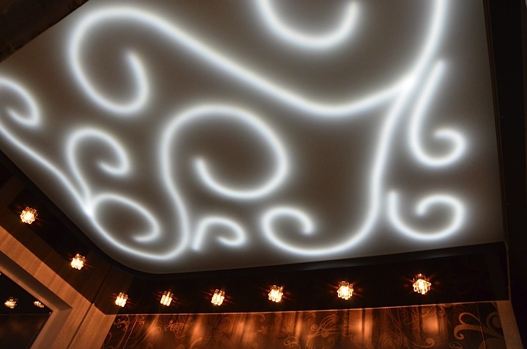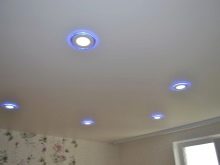 When choosing lighting devices, give preference to economical LED models.. This is due not only to their gentle energy consumption, but also to the fact that stretch ceilings do not tolerate exposure to high temperatures, including from lamps, and the LED bulbs do not heat up.