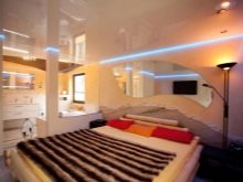 It is worth considering that glossy ceiling films look more organic in modern stylistic directions. They are unlikely to fit into a classic setting..