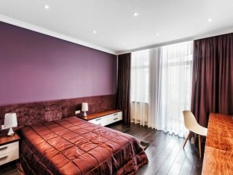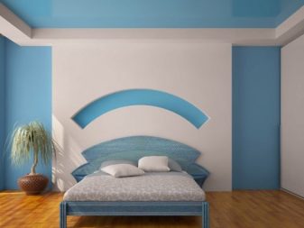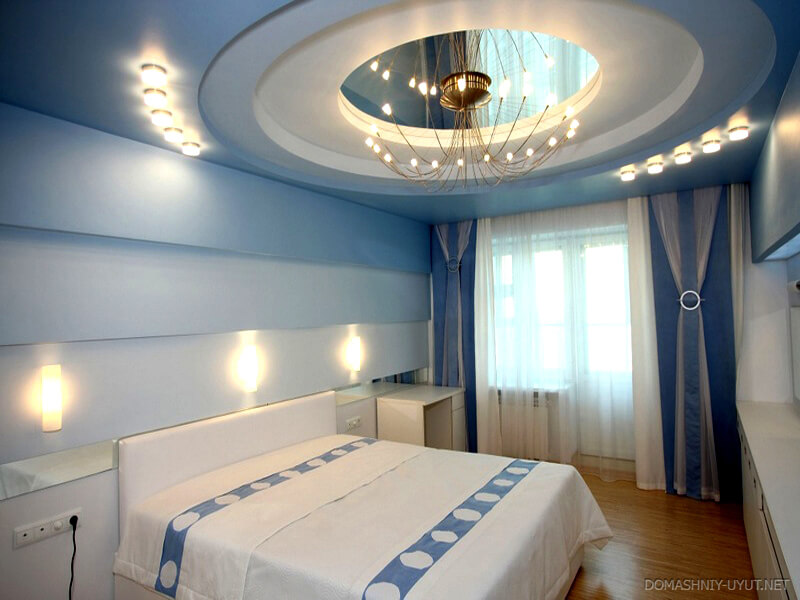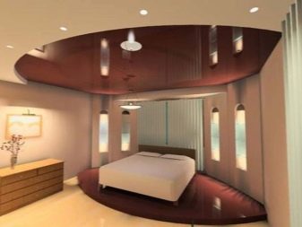 For a small bedroom in a city apartment it is better to choose canvases of light colors and use simple one-level designs. For more spacious areas is quite suitable and a multi-level ceiling. Its color can be not only pastel. The main thing that he came to the rest of the colors in the interior.