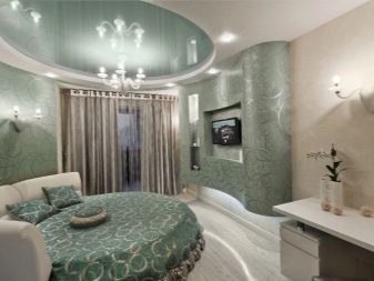 Two-color and multi-color stretch coatings are very popular today.. They can combine both contrasting colors and different shades of the same color. Such coatings look interesting in the bedroom.With such options, you can make a visual zoning of the room.