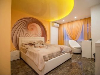 In the bedroom you can install not only a simple, but also a multi-level ceiling. Such design decisions can transform the interior and make it more organic.