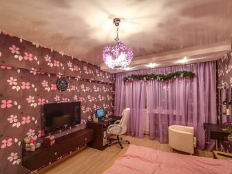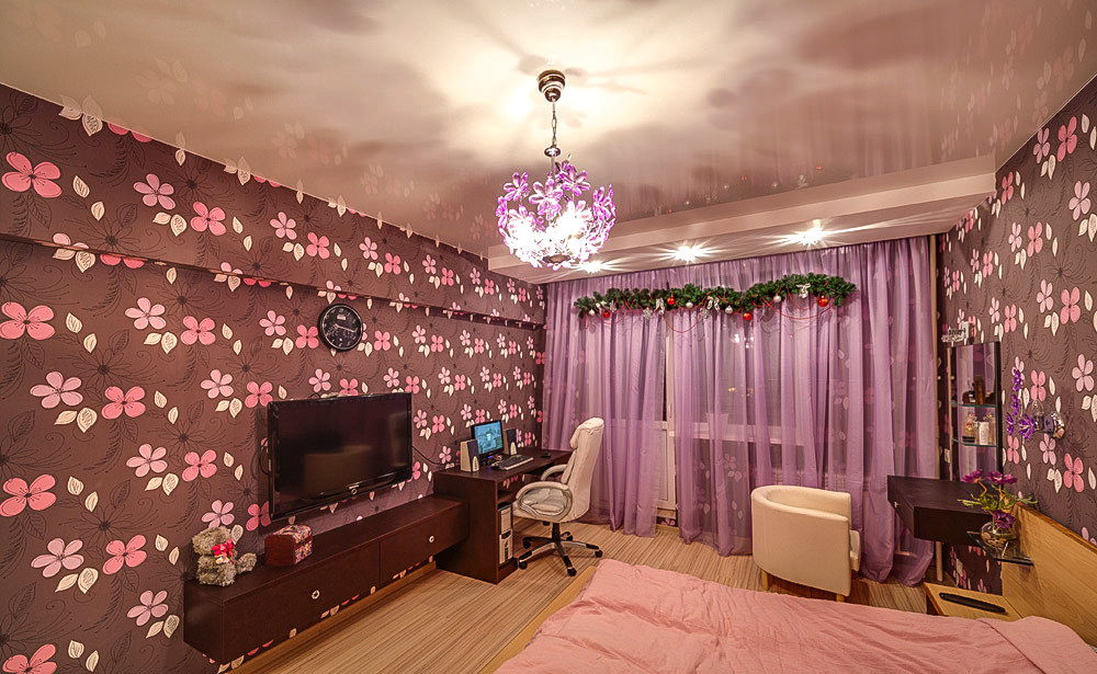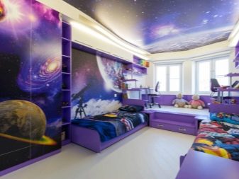 For a teenager's room, ceilings with cartoon characters will not work. Here it is better to give preference to more fashionable and “adult” canvases. It can be plain colors or beautiful films with the image of a starry sky, space, abstraction. On these original ceilings, consumers leave extremely enthusiastic reviews, because they look fashionable and nontrivial.