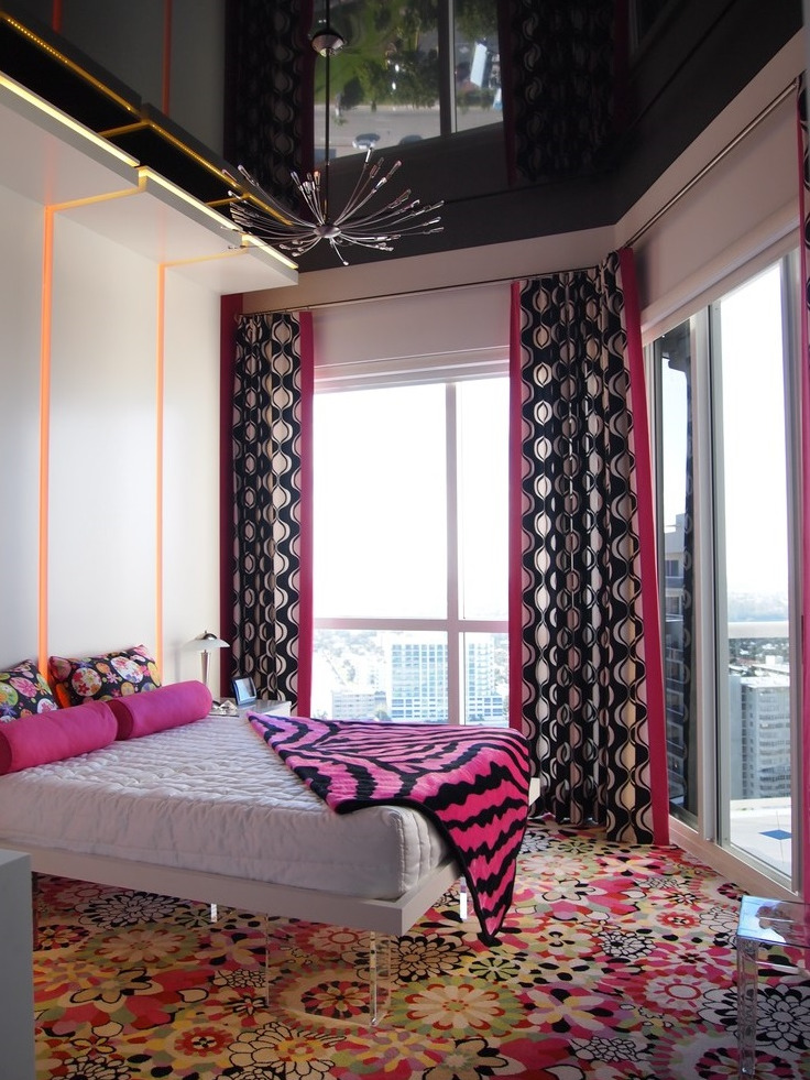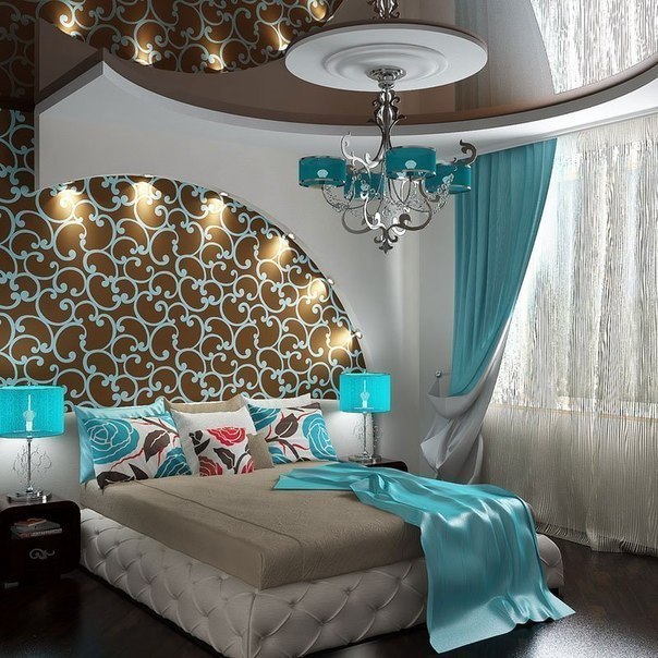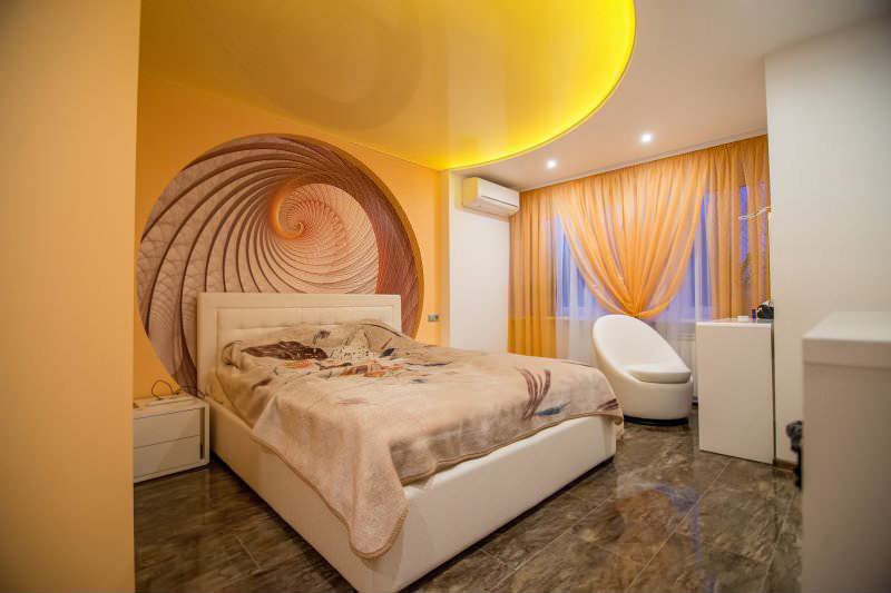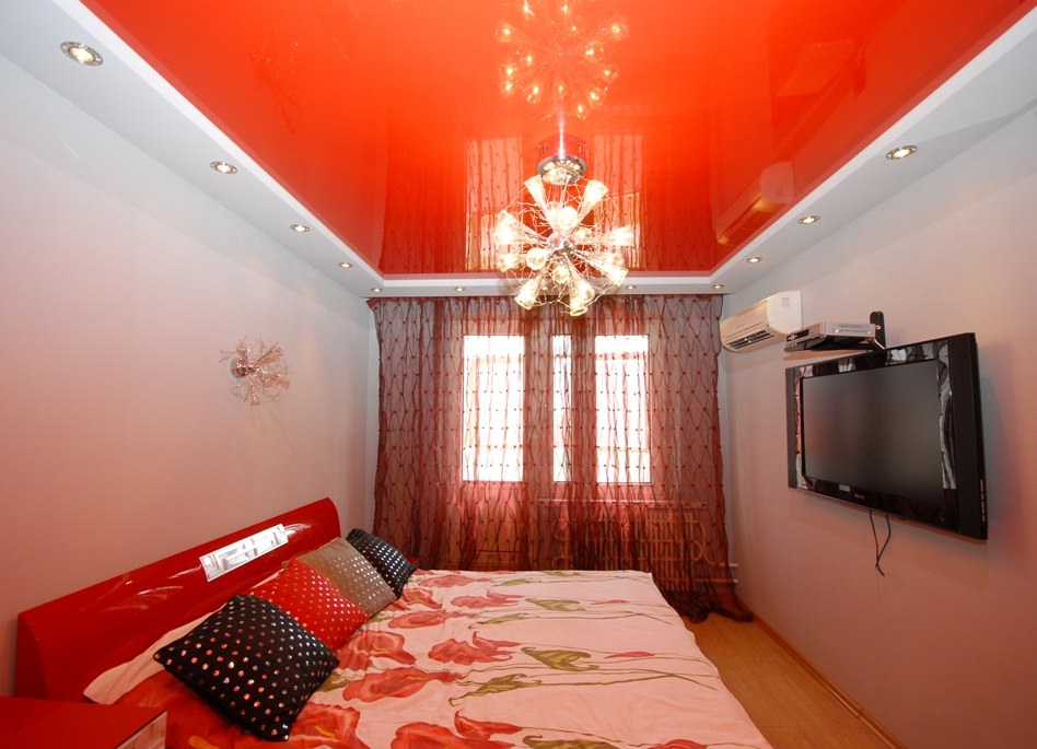 - Designers do not recommend using too bright colors in the bedroom. If you are an energetic person, and love bold design ideas, then you should turn to such colorful ceilings. However, be prepared for the fact that, perhaps, over time, their brightness will begin to annoy you.