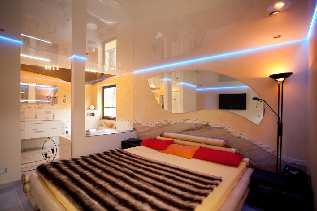 Not the last role in the design of the stretch ceiling in the bedroom is played by properly selected lighting.