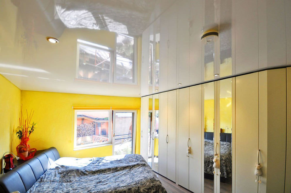 The most common are glossy canvas.. Otherwise they are called lacquered. Such finishing materials have a beautiful design. however, in bedrooms they are not installed as often. This results from the fact that from their mirror surface the natural light streaming from window openings is reflected.