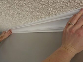 - The foam panel tightly pressed to the markup drawn on the surface of the ceiling and held for 20-30 seconds. It is advisable to calculate the force of the clamp so as not to damage the fragile product;