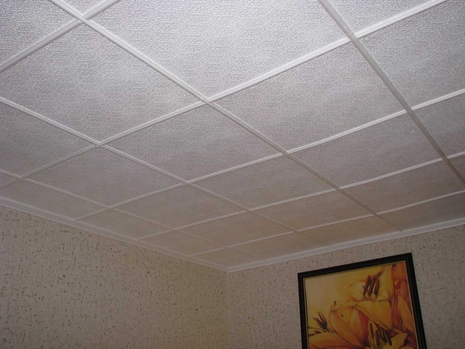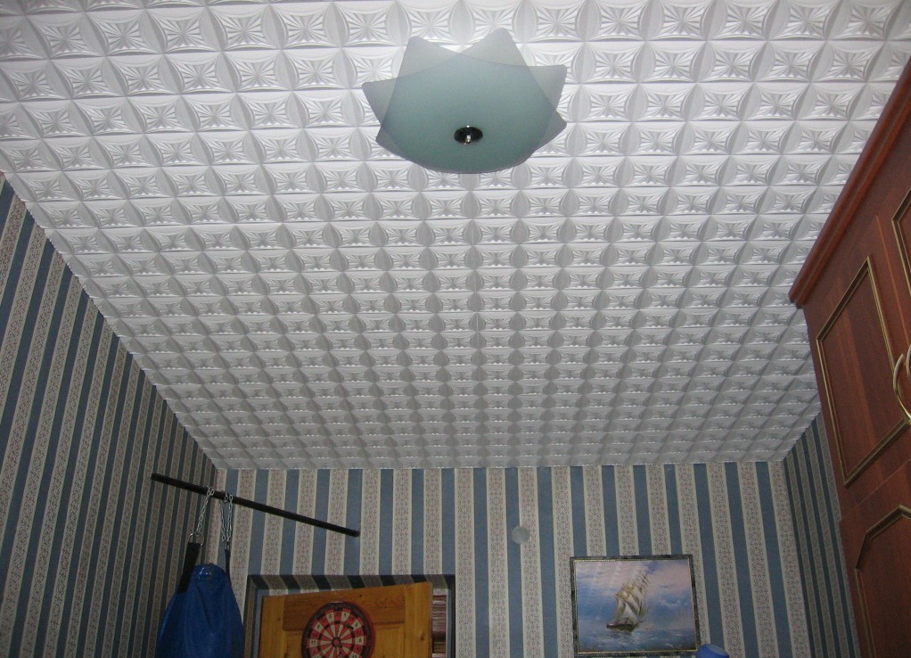 - The edges of the ceiling tiles should be smooth, without sagging. Otherwise, it will not be possible to exactly connect the tiles, and the formed inter-tile gaps will look unaesthetic and will cause additional difficulties in their elimination;