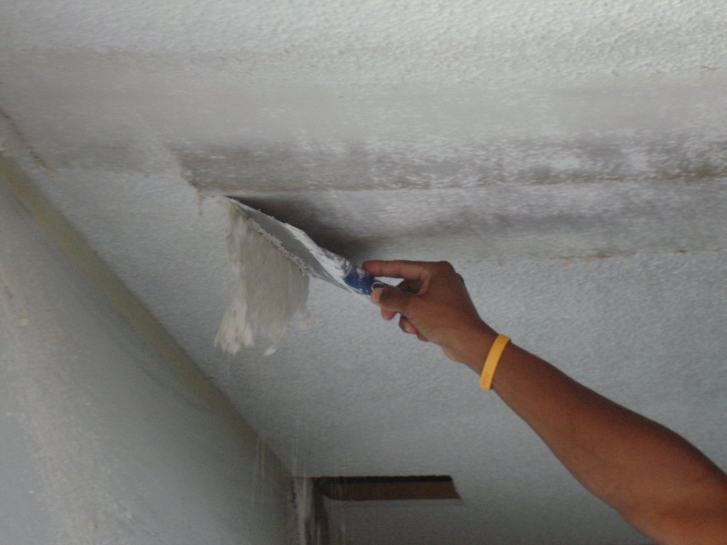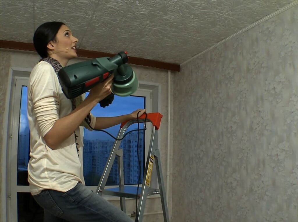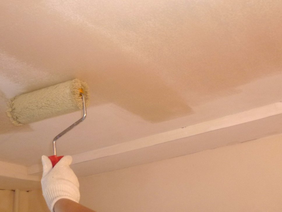 - cleaning the surface of the old finish. It is necessary to remove with a spatula a swell of old paint or peeled-off whitewash, and then wash the ceiling;