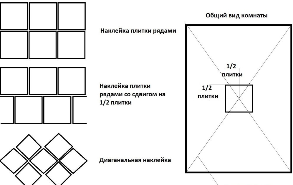 - Since the drawing of a tile can visually enlarge or reduce the room, at the selection of material it is necessary to make a preliminary layout of at least four tiles;