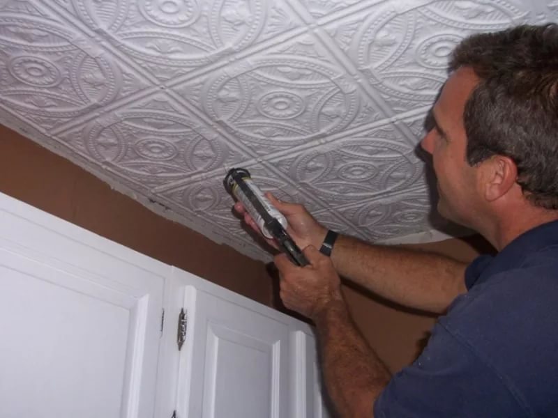 See how to quickly and efficiently glue the ceiling tile, see below.