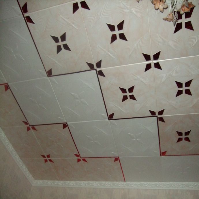 There are two main options for facing the ceiling surface: parallel and diagonal. With the parallel method, the tile is laid square from the center, parallel to the walls. With the diagonal method - from the center diagonally at an angle of 45 degrees.