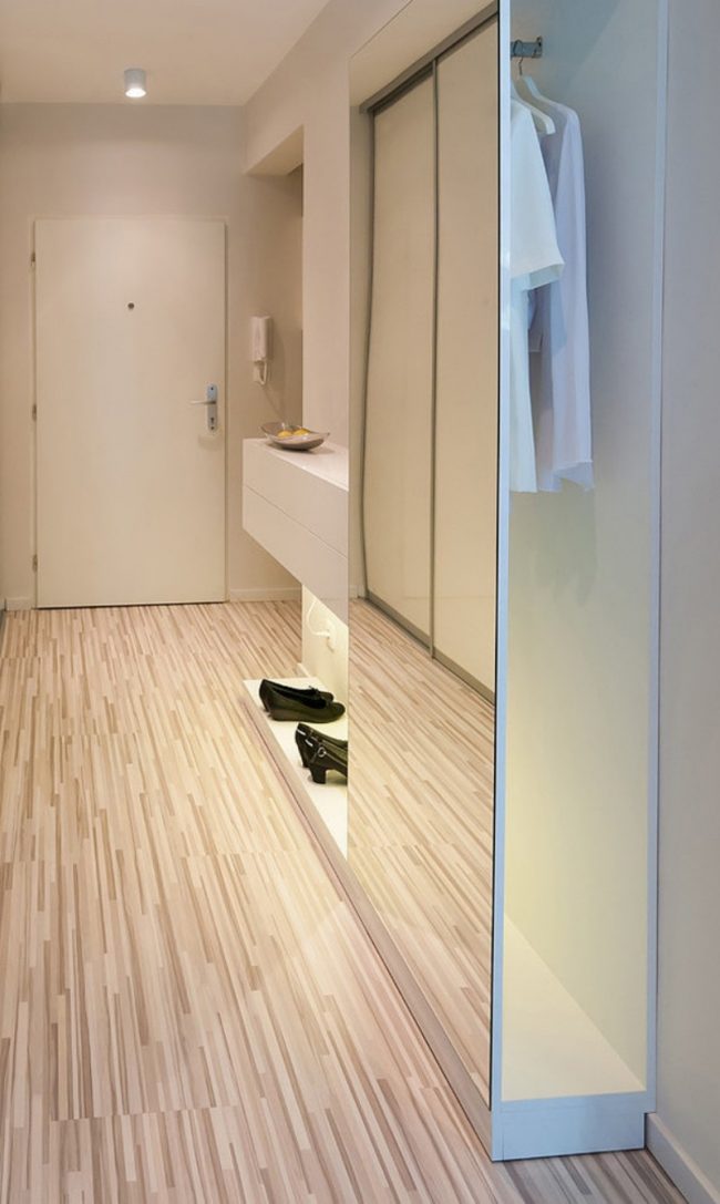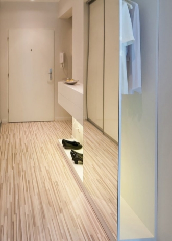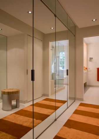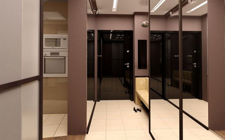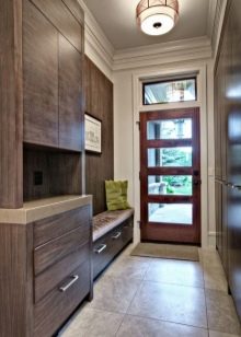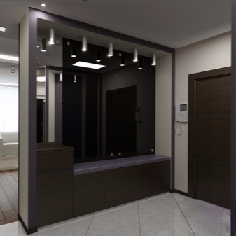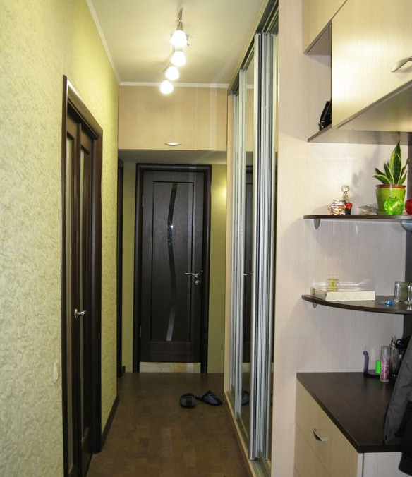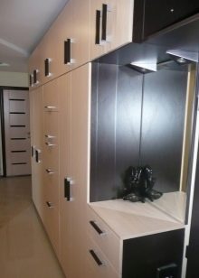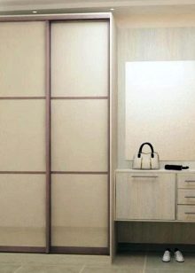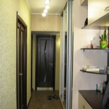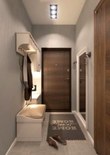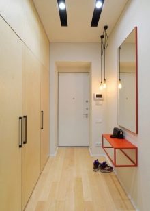 - Closet: a wardrobe installed along one of the corridor walls can collect all the emphasis on oneself, playing the role of a mirror and a spacious dressing room for storing clothes with shoes. This option is appropriate and compact in extremely small dimensions of the room.