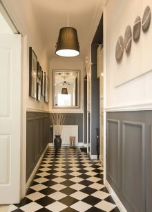 - Ceramic tile: bright floor ceramic tiles can be the basis for the design of a narrow corridor, while the rest of its interior details are proposed to be made in monochrome colors. This solution allows you to divert attention from the narrowness of the room.