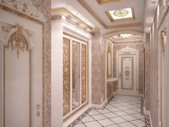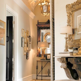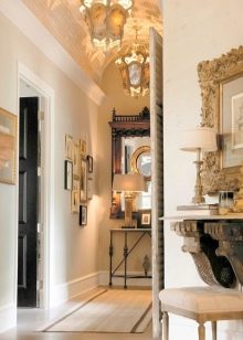 - Rococo. The stylish entrance hall, made in the rococo style, will be characterized by the presence of elegant, with twisted legs and carved furniture. The main background for it will be the pastel background of the room, and the furniture itself may be bronze or gold.
