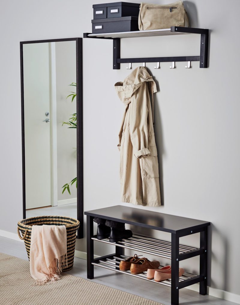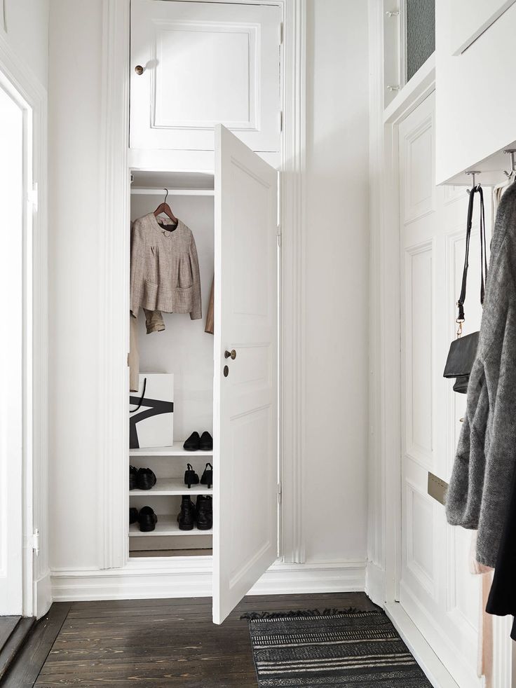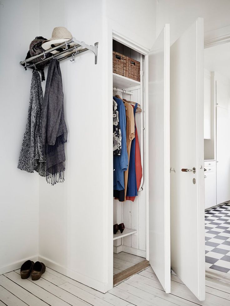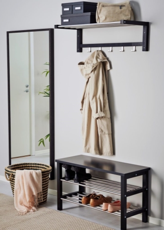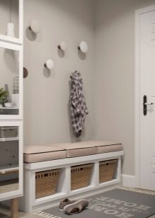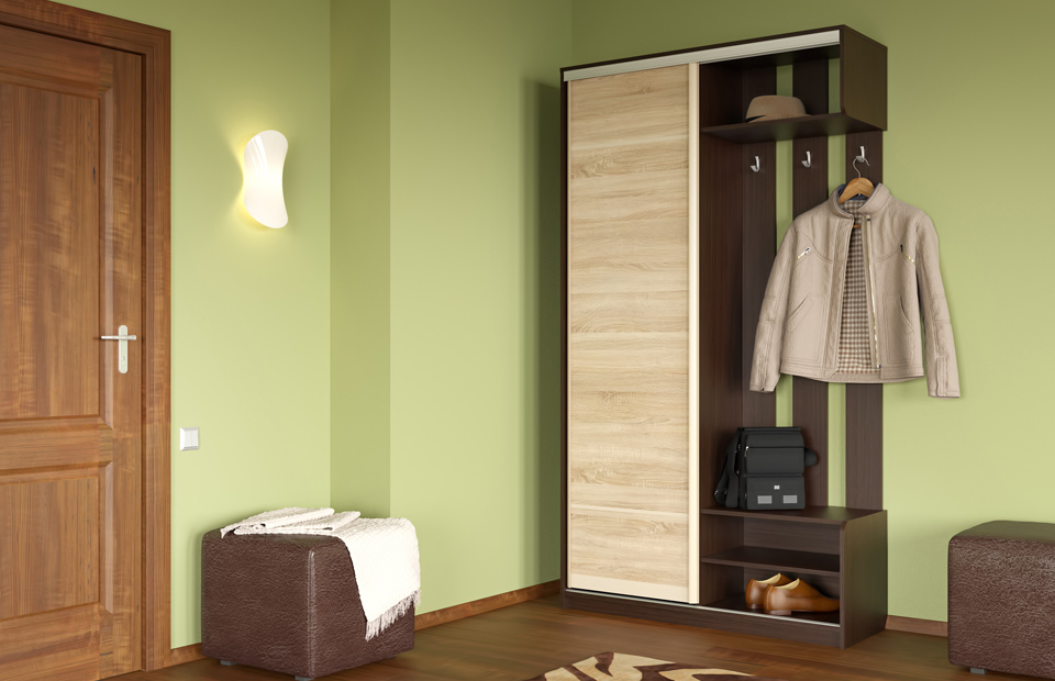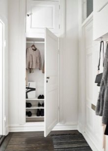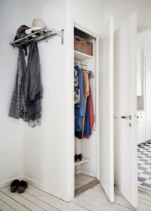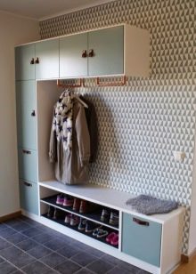 The wardrobe is very convenient for mini-halls, but if there is no space for it, it is quite possible to use a shallow wardrobe.