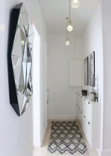Considering the fact that there are no windows in the hallway, good lighting and light wall coverings will correct this disadvantage. As a source of lighting, small wall sconces and lamps, spotlights around the perimeter, compact chandeliers made of crystal or suspended antique-style lamps look good. The choice depends on the overall design concept. Even in the usual "Khrushchev" a small hallway can look like a spacious area, if competently solve the issue with lighting.