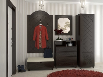 - Wenge color. This dark classic color used in the hallway requires a cautious approach to itself, since it does not like unnecessary small details. Best of all, this option looks on smooth, smooth surfaces without undue pretentiousness of forms.