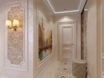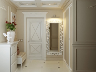 - Modern and classicism. These styles are characterized by the use of natural colors - light and sandy tonalities. The corridor, decorated in white, will be a classic design option.