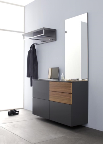 - Cabinet furniture. Modular systems made to order for specific room dimensions are considered more convenient. The options are many, most importantly, you need to decide on the number of items and their placement. The most common solution is a cabinet with a mirror. Since it has rather large dimensions, the central role of the entire interior composition belongs to him.