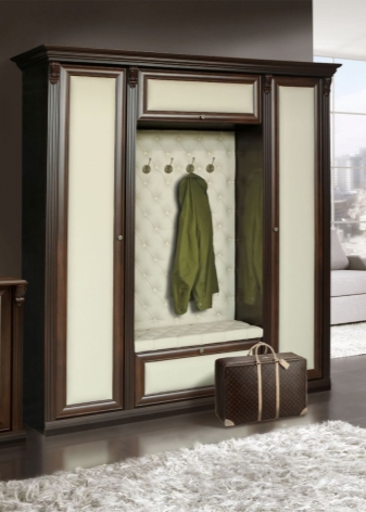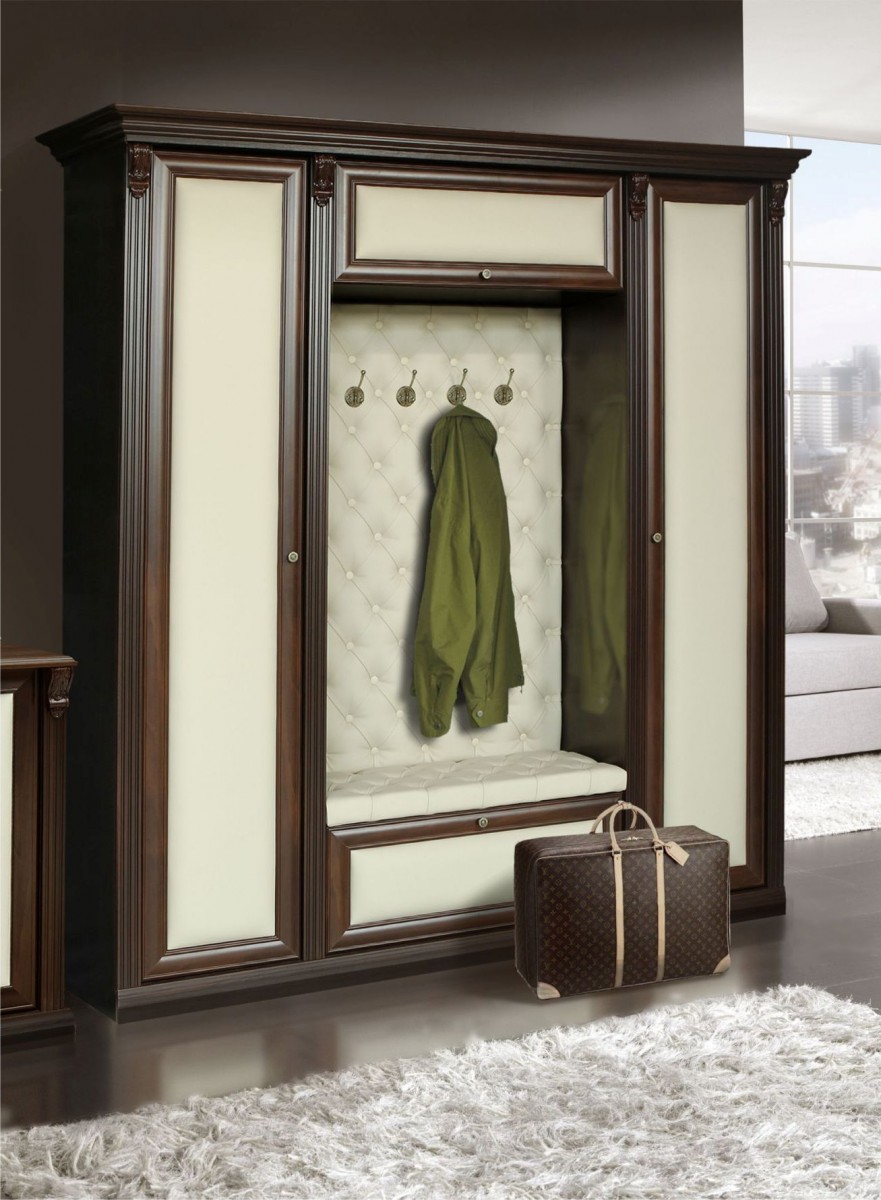 - Wardrobe with hangers. Interesting products with built-in system of hangers, hooks and seats with soft surfaces. Such cabinets are the most compact and multifunctional. This design can be put along one of the walls and there will be nothing more to add to it.