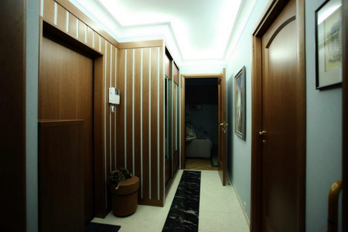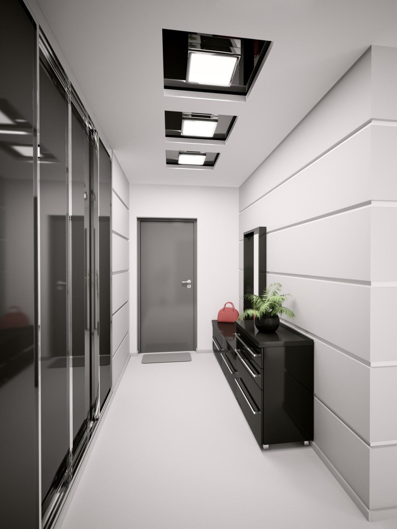 Choosing the design of cabinets in the long corridor, you should take into account the basic principles of room design: