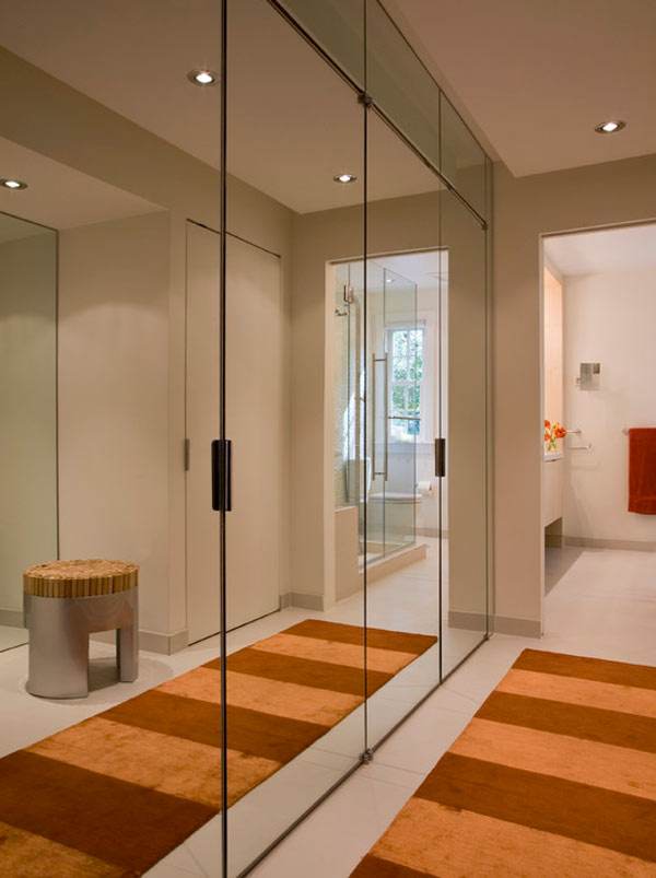 One of the spectacular, increasing space, design techniques, was the use of large mirrors. They are attached to the front of the furniture, sliding or hinged doors or mounted in frame frames directly on the wall. The reflecting mirror surface creates the illusion of a double increase in the area and enhances the lighting it has. It seems that in such a room even breathe easier. However, in order to avoid injuries, it is best to apply the design to the mirror, otherwise someone may try to pass through it by mistake.