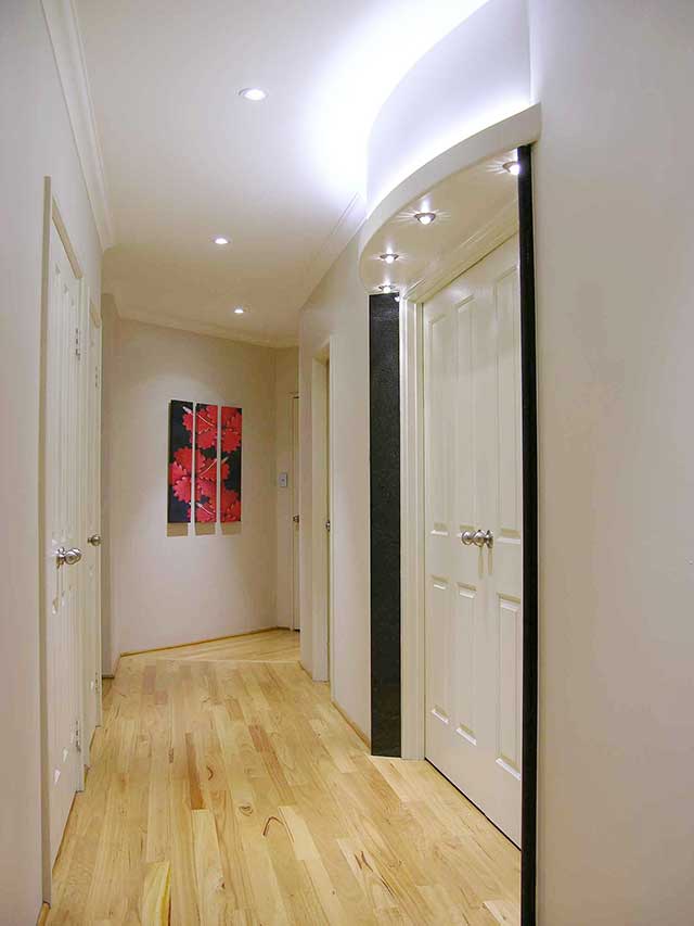 - A narrow area always requires good lighting, this technique adds spaciousness and comfort.