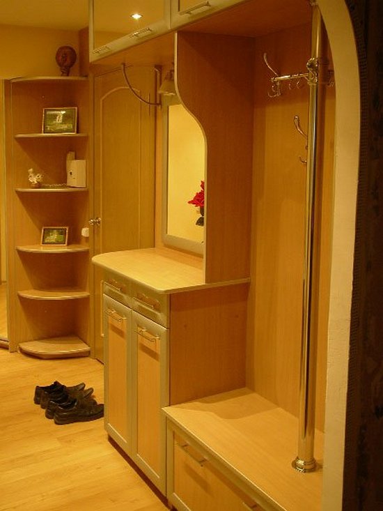 The list of domestic and foreign manufacturers of furniture for a small hallway is quite large.Large manufacturers and small businesses cope with the task of saturating the furniture market very effectively. The price range depends on the material from which the design is made. The most expensive models are made from solid wood, budget options are made from wood products: