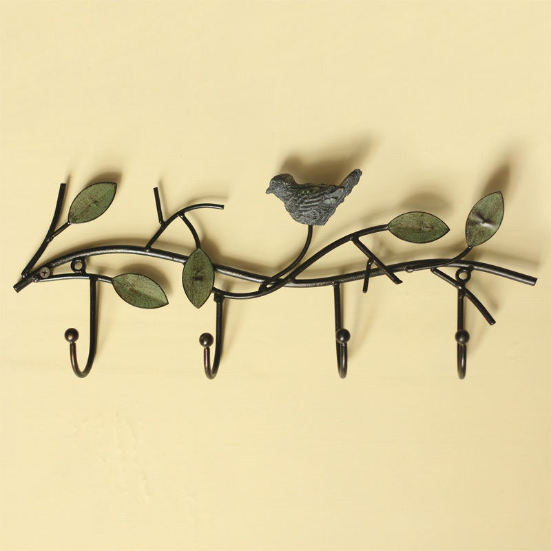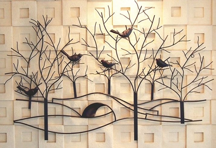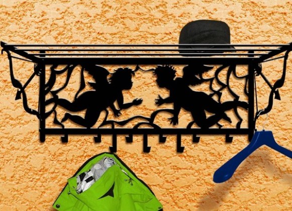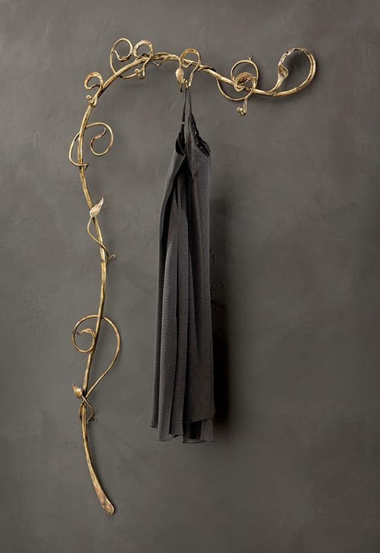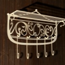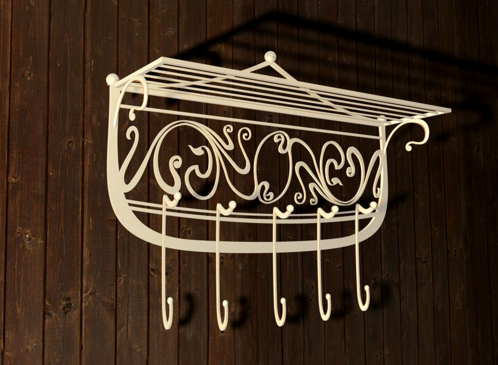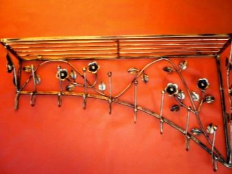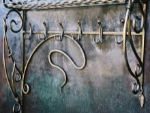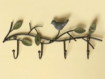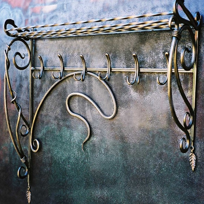 Forged wall hangers (in addition to products in classical geometric shapes) can be made in the form of birds, animals, plants, ornate patterns or plain patterns. An interesting option would be a construction depicting an action - a whole picture of metal. In a modern interior, items often find their place in the form of thematic images - for example, an umbrella, a person in a coat and a hat.