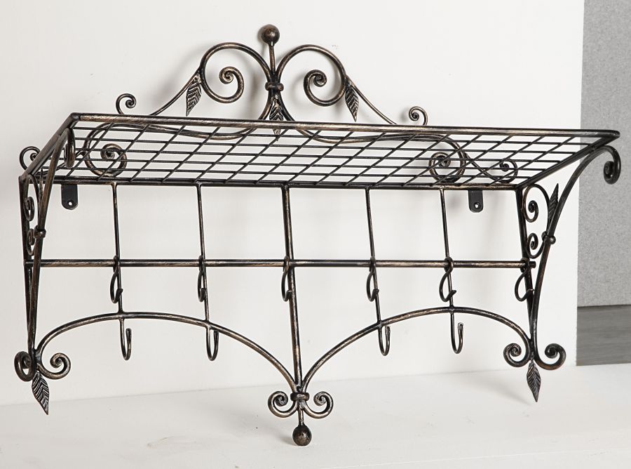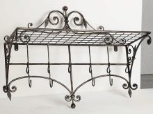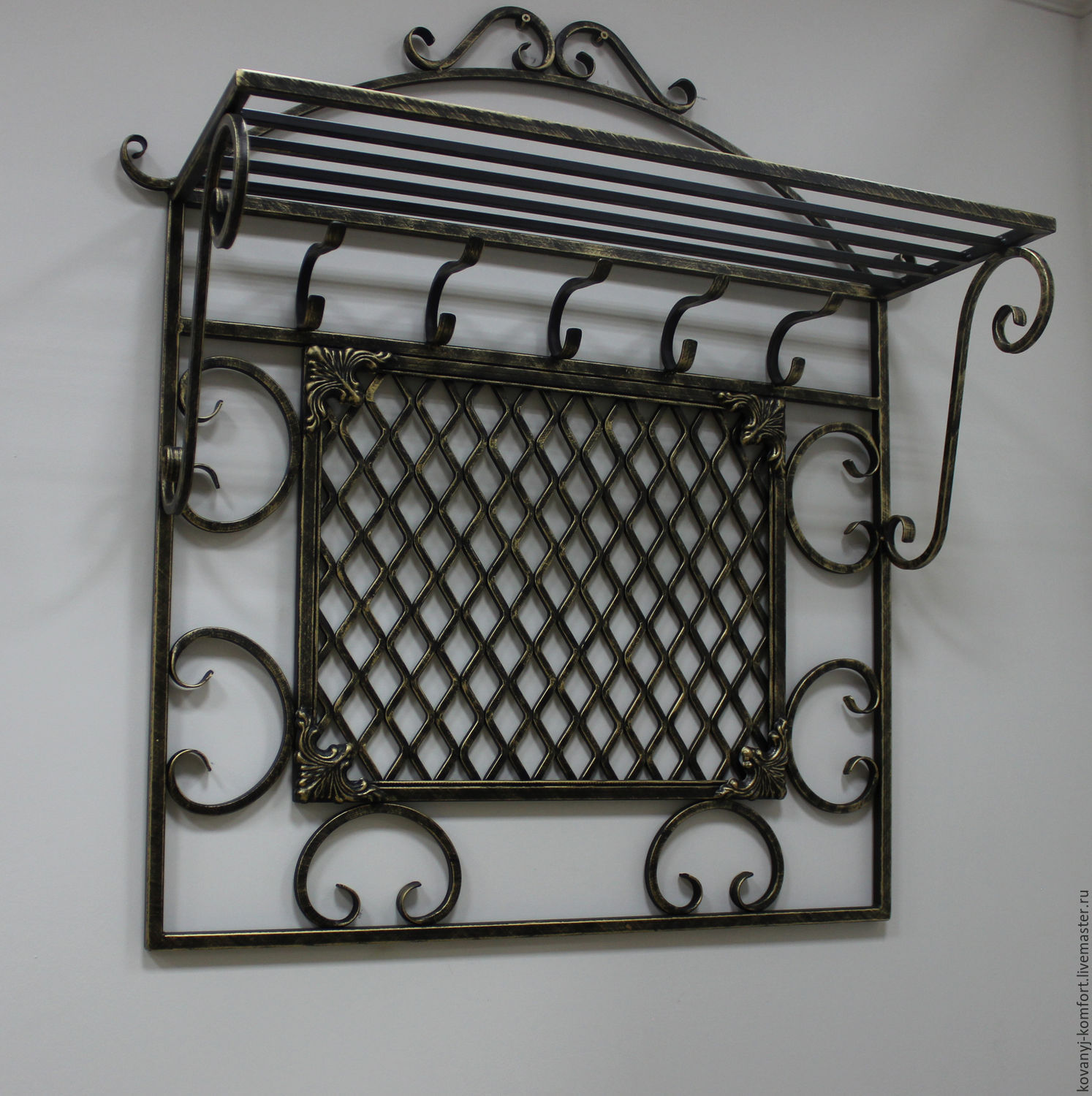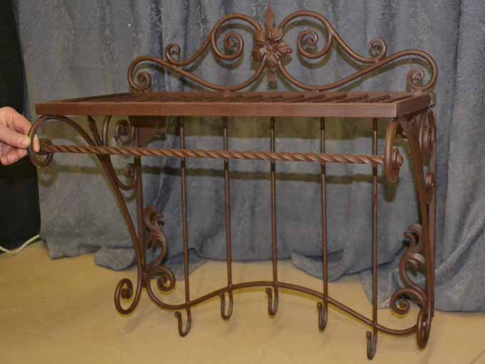 Metal hanger with a fancy original pattern, decorated with all sorts of decorative elements, suitable for hallways in a classic style.