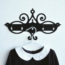 In modern style, you can experiment with incredible options in fancy shapes and a kind of original performance hooks. Design works will organically fit into such an interior and emphasize the relevance of the direction, will add a highlight to the room. Intricate shapes, funny patterns will make the design of the hallway unusual. The use of stylized holders for clothes (for example, in the form of wrenches) is possible in the styles of loft, techno.Unusual geometric metal structures will be relevant for high-tech hallways.
