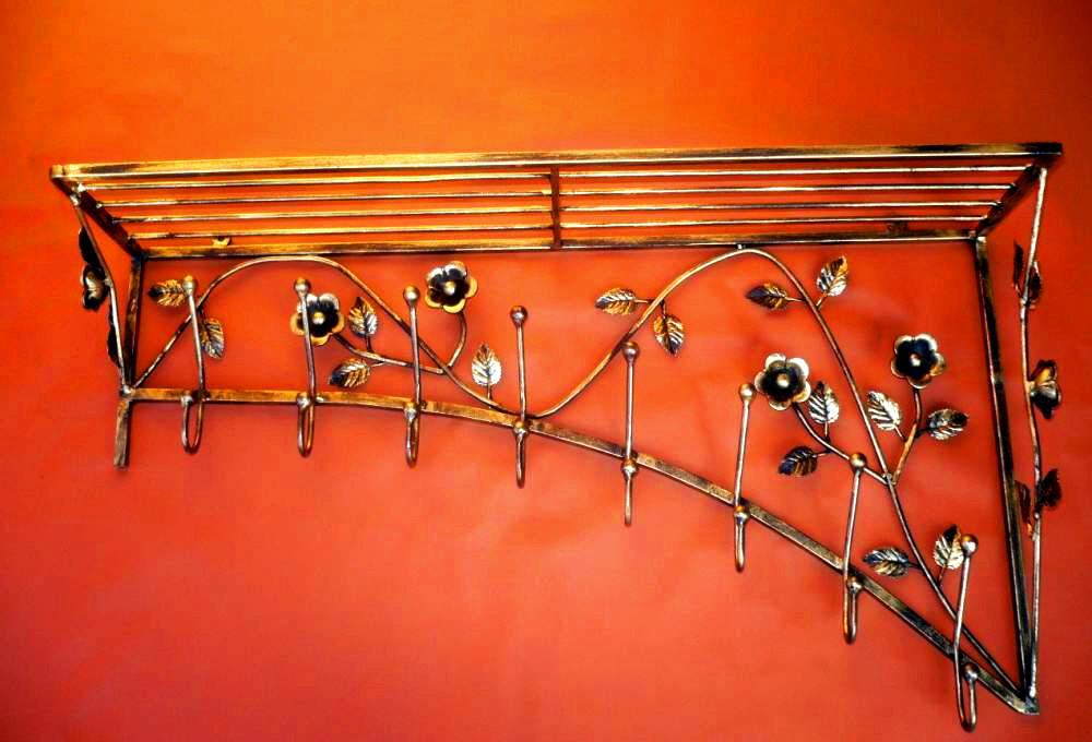 There are different shades of such products, various combinations of colors are possible. But still the most popular are hangers in dark colors, as well as with a golden or chrome finish. For decorating forged hangers use a variety of stones, wood, glass or plastic elements.