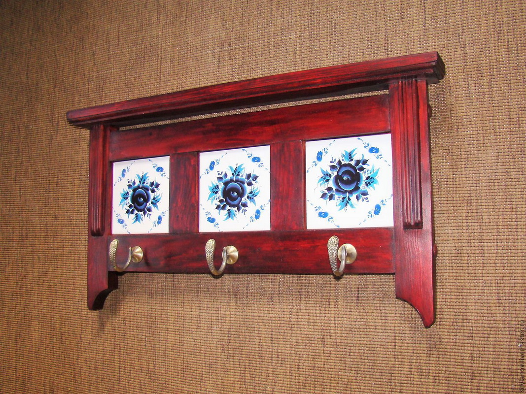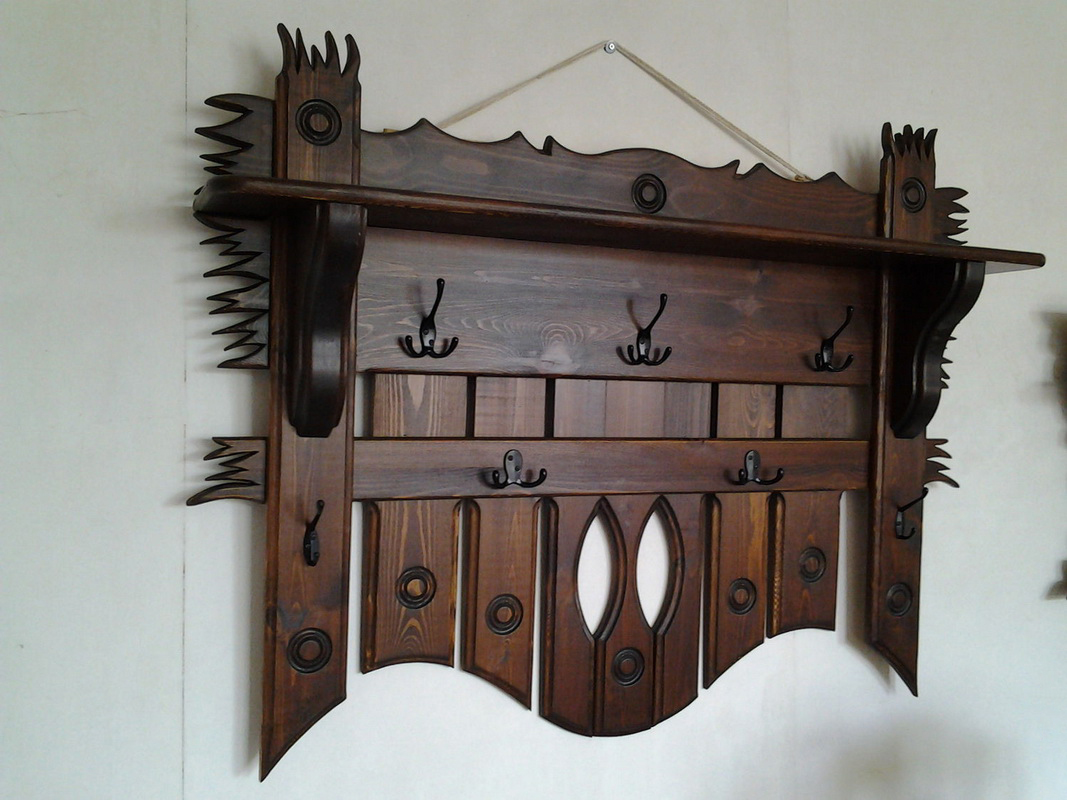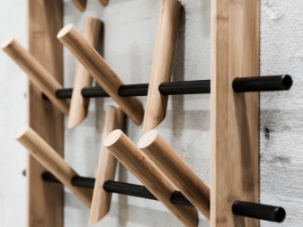 The most common combination is a wooden base with metal hooks. The budget options are characterized by the presence of plastic elements in addition to the tree.You can extend the life of natural wood with treatments with special compoundsAlso, this task can be performed by dyeing, varnishing or aging. As the decor of elite varieties of wood used lacquer, carving, complex shape of parts.