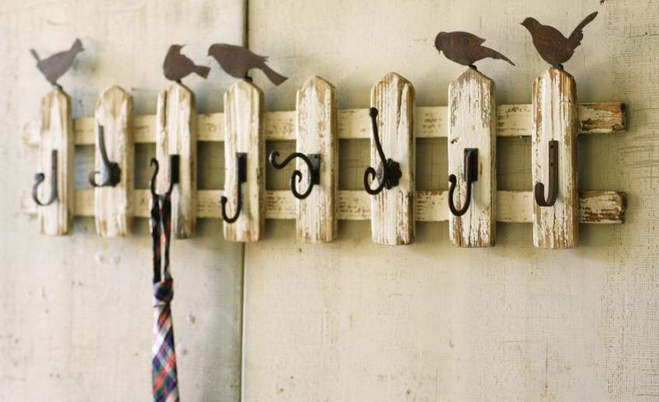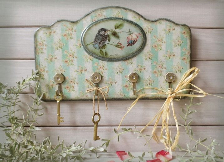 - For Provence style decorators use decoupage technique. In this way, you can decorate the wooden plank of the hanger, as prints on which you can use floral motifs or pictures from rural life.