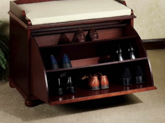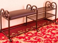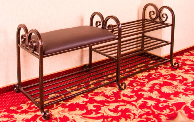 In the hallway you can buy a shoebox with a seat in a variety of styles. Everything will depend on a single room concept. For example, options with carved legs are perfect for rococo style. If you love the Baroque style, then you can buy forged shoes. For minimalism, iron models will come in handy with retractable drawers. For Provence characteristic wicker products. But the classic will be presented with options from the array of wood.