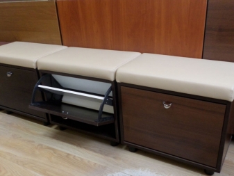 In the modern interior you can find many of the most unimaginable options for the location and use of fashionable shoes with a seat. It is worth noting important nuances. If you have pets, it is better to prefer closed models. So you reliably protect your shoes. For a small corridor perfect compact model. It will not take up much space. At the same time, keep in mind that when opening the folding shelf there should be free space. Consider and additional fasteners to stand very firmly in place.