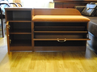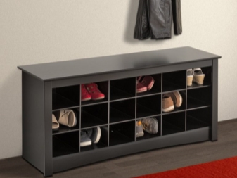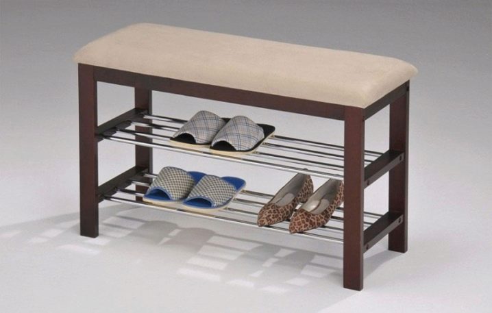 Such options have clear advantages. You will not need to constantly open and close the product. Shelves will be ventilated. At the same time such a design does not protect you from dust. Similar options are usually made from different materials. Metal products are in great demand. They are very strong and durable. In this case, the seat will also be comfortable to sit down and relax. It can be a bench bench. This bench will help to wear comfortable shoes.