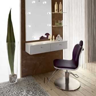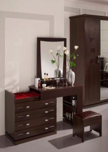 In modern styles there is also a place for a dressing table. Model in neutral color with strict shapes and chrome handles - the choice of high-tech. In this case, instead of wood manufacturers use metal, plastic and glass. Laconic furniture in soothing colors is perfect for minimalism.