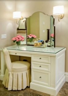 The dressing table (dressing table) is perfect not only for a bedroom or a spacious bathroom, but also for arranging a hallway. Furniture combines many positive aspects: practicality, beauty, convenience, functionality.