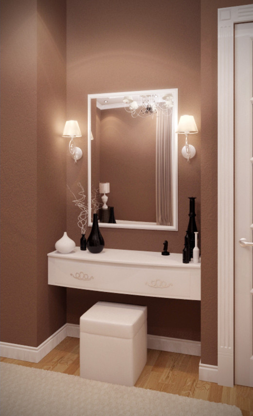 It is necessary not only to choose the right model, taking into account the particular style and size of the hallway, but also to correctly install the furniture and arrange a place around it. Dressing table is placed in a standard way along the wall. As a rule, this is a place near the entrance door.Consider that it is necessary to leave the place for placement of a stool, without having blocked thus at the same time pass.